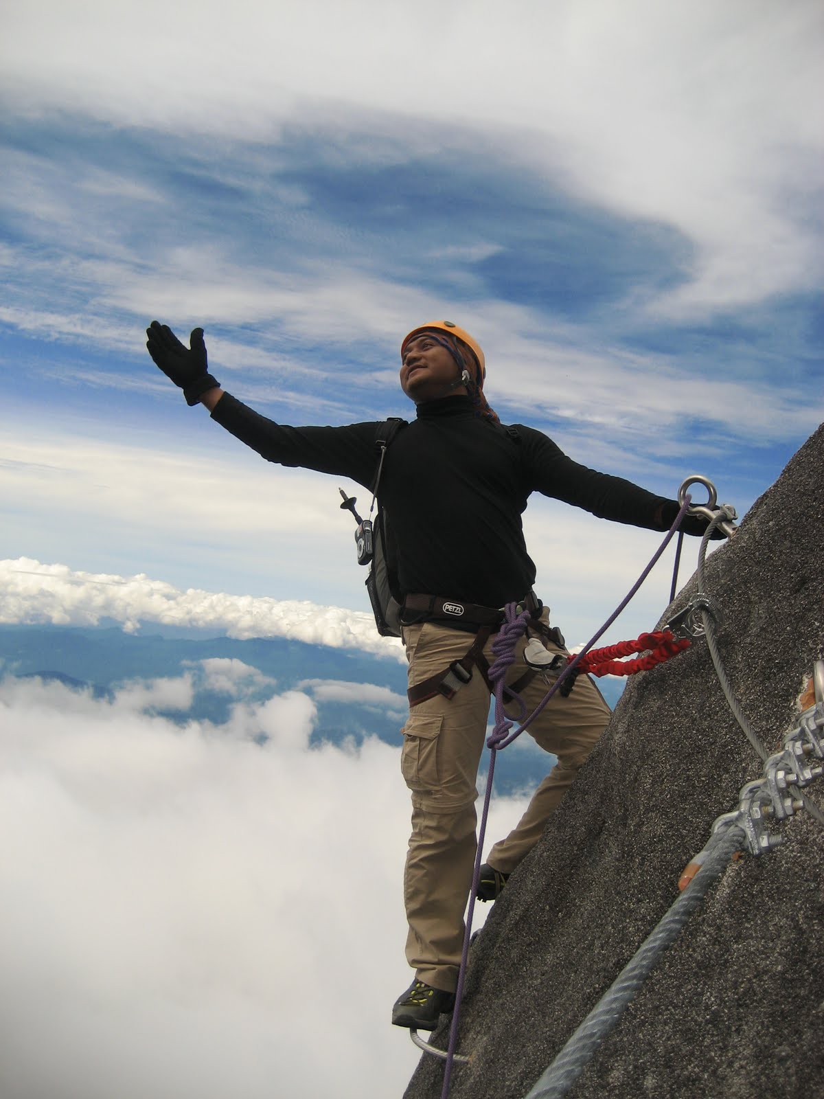 We organised a trip to Sabah recently to climb up Mount Kinabalu and down via the highest ferrata route in the world. The objective was to inject some fun amongst the members and to proudly fly our association’s flag at the highest peak in South East Asia. The expedition was successful and we had a great time doing it together with several other climbers from Kuching, KL and also from other countries such as New Zealand and Finland to name a few. We hope to inspire others to climb this great mountain and to experience the thrill and challenges of performing the ferrata. We are very sure you will enjoy it as much as we did. To Shafini and Hozay, a million thanks for the great company throughout. Enjoy the pics…
