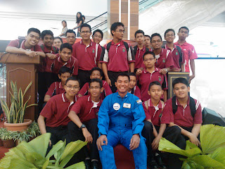 Saturday, 28th April 2012. I was invited by the Penang State Mufti Department to give a talk to the general public at the Jusco Mall, Bandar Baru Perda in conjunction with their Astronomy Day event. Schoolchildren, kids, adults and shoppers crowded the concourse while I presented them a slideshow about the astronaut programme and my experience during the spaceflight medical evaluation in Star City, Moscow. I explained about the importance of the centrifuge training we had to endure in preparation for the g-forces that will be experienced during the blast-off to space. The crowd were receptive and asked me a lot of questions after. I had a great time and hope that the folks in Bandar Baru Perda had fun too. Thank you for having me Penang….until next time!!!