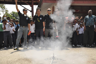 Friday, 28th June 2013: We continued with our national road tour and this time we conducted our rocketry workshop in Sekolah Jenis Kebangsaan Tamil Jasin in Melaka. We received a rousing welcome and the kids were thrilled to be taught how to mix the solid fuel from different ingredients. The highlight of the day (as always) was launching the rockets sky high and beyond. Thank you for having us and do enjoy the pictures…