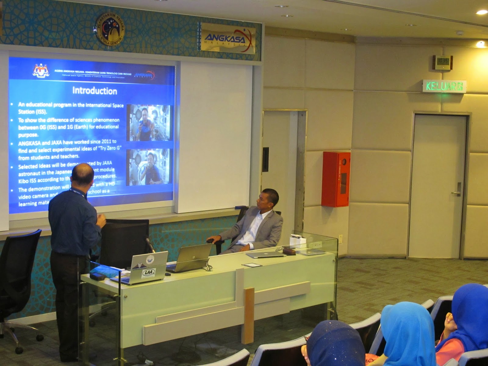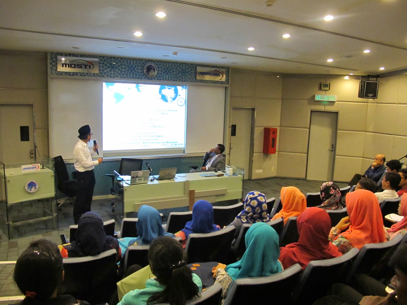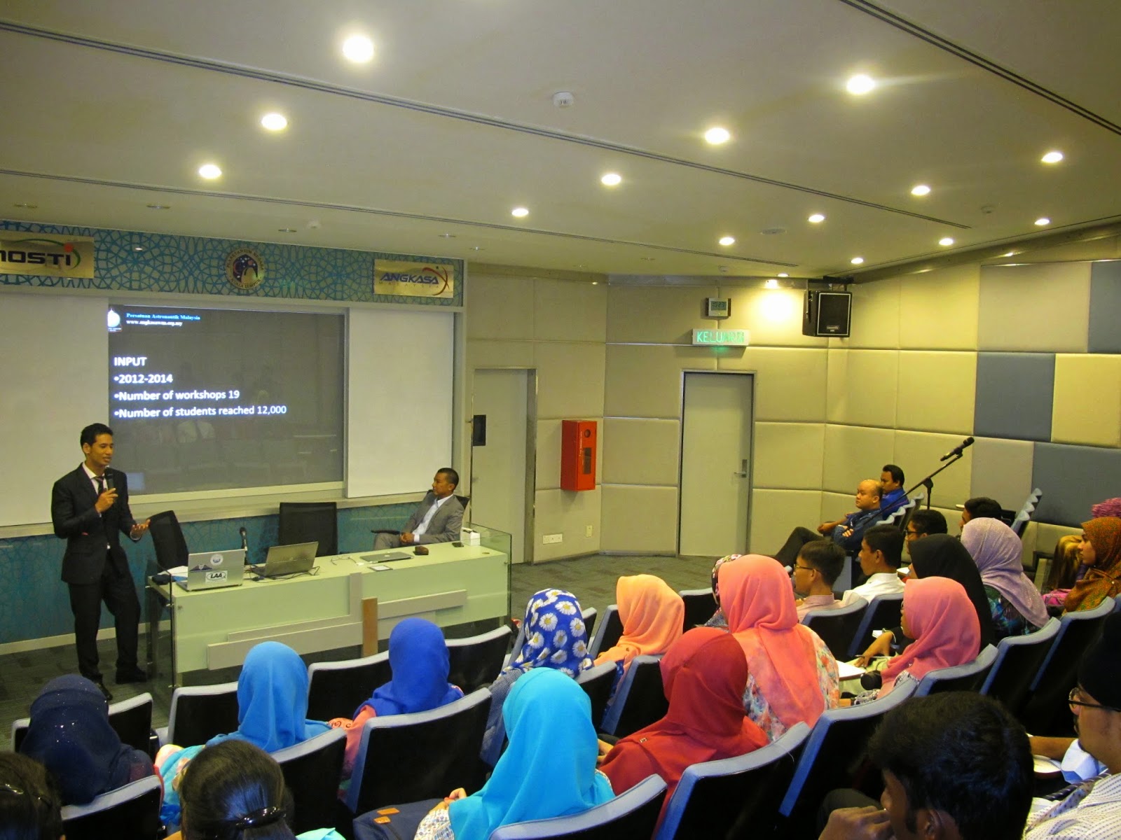 We organized a Space Symposium at the Planetarium Negara today in an effort to promote aerospace studies to college students and the general public. A total of six speakers were invited to present their papers related to the field of astronautics and space science. Mohd Yusfi opened the proceedings, followed by Mr. Jong from the Planetarium elaborating on the ZeroG project. Soon after my presentation, Ir. Ikhwan who came down all the way from Qatar talked on “Laser Scanning in Mapping”. The highlight of the day was Bostami Ahmad’s presentation on spaceship designs with the closing paper by Prof. Harridon on “Aircraft Health Monitoring System”. The event was a great success and we would like to thank everyone that attended the event, especially undergrads from Kolej Matrikulasi Selangor and most importantly Planetarium Negara for the venue and their continued support. We look forward to bringing you more space related events in 2015. Wishing everyone a Merry Christmas and a Happy New Year. Thank you from AAM.