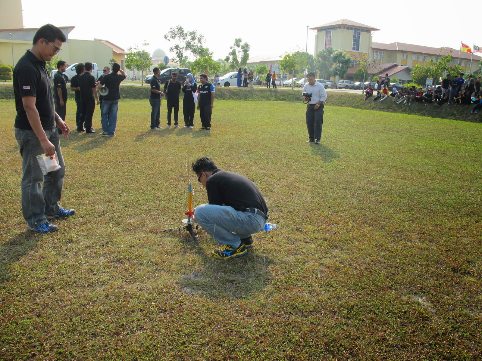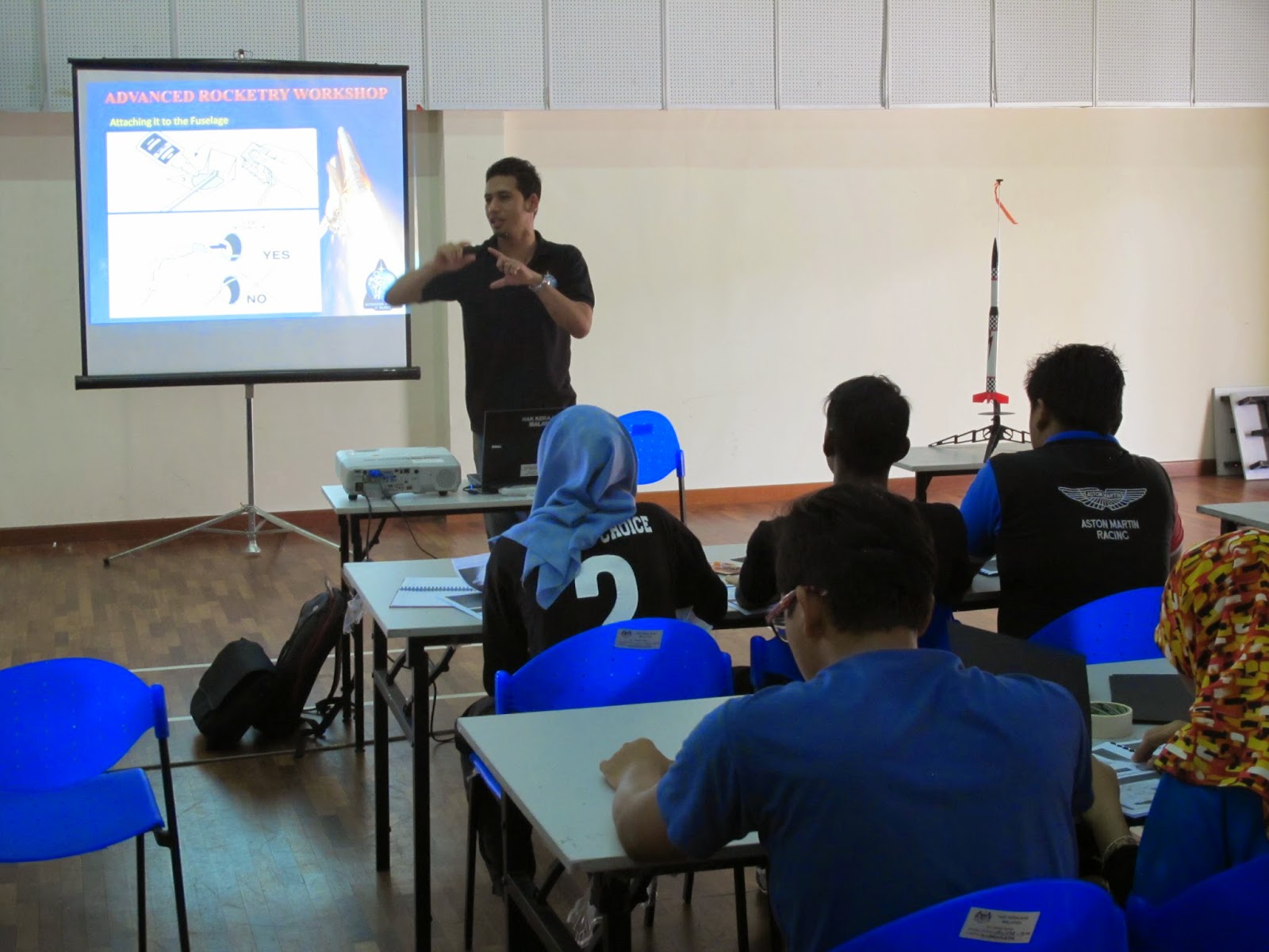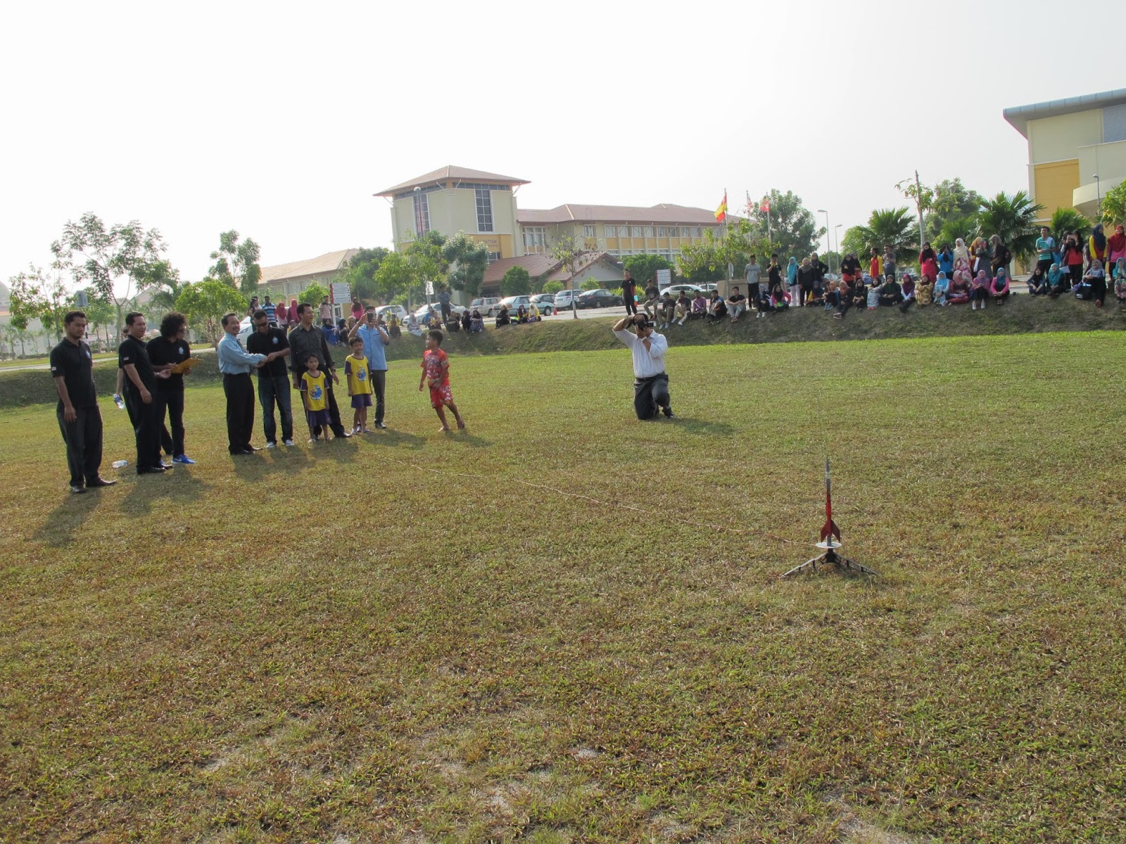 Friday 27th February 2015: We conducted an advanced rocketry workshop in Kolej Matrikulasi Selangor in which 10 groups of students and lecturers got to experience designing their own rockets and launching them sky high. The competition resulted with both the lecturers team taking the two top spots to their relief. The workshop was held in conjunction with their “Science Carnival 2015”. In the end everyone had fun and the event was a great success.