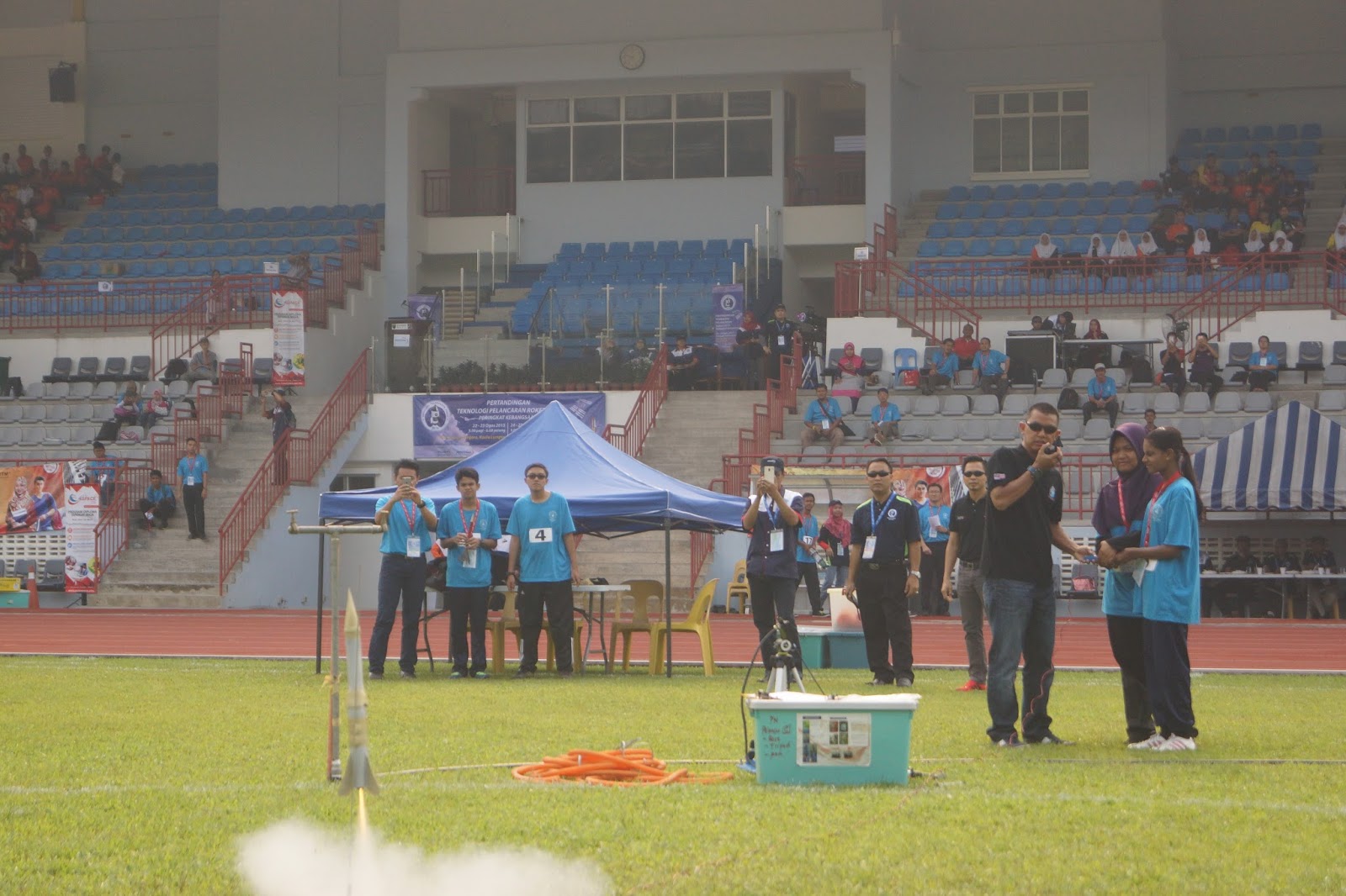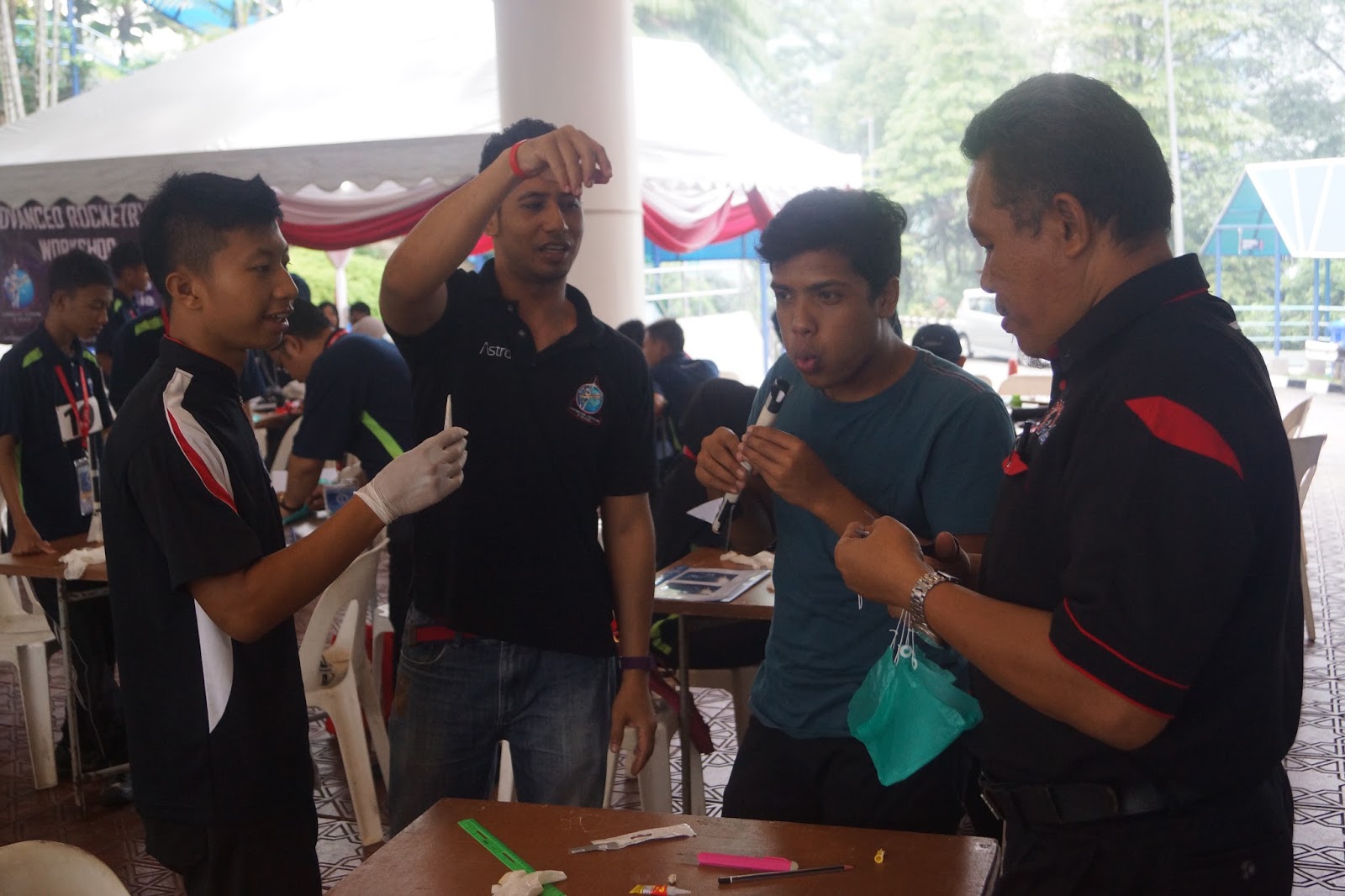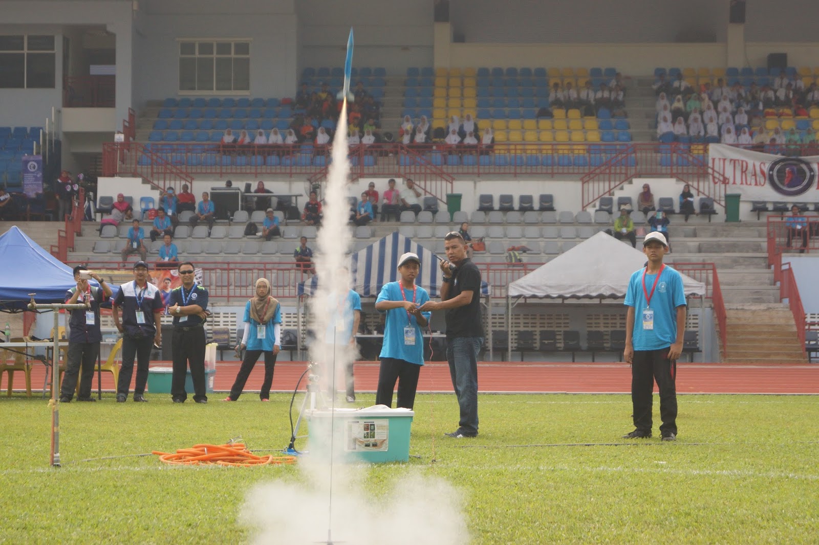 24th and 25th August 2015: We introduced the solid fuel category during the recent National Rocketry Challenge to bring excitement after 13 years of competition using water rockets. During the first day, the top 19 schools in Malaysia went through our Advanced Rocketry Workshop and designed and built their rockets. They were judged for rocket design and teamwork. The folowing day, the teams were impressive with their launches and were judged for apogee and parachute deployment. In the end, MRSM Pasir Salak, Perak emerged as the winner narrowly beating SMK Khir Johari also from Perak and the rest of he field. We had fun and hope that the students did too. We would like to thank Planetarium Negara and MOSTI for having us and we look forward to the solid fuel category being a permanent part of the national competiton. We would also like to thank our new volunteers and mentors (Uncle Zul, Jenal, Subly and Nazmi) for contributing towards the success of the programme. Thank you guys!!! We’re wishing everyone a great “Merdeka Day” ahead. Do enjoy the pictures…