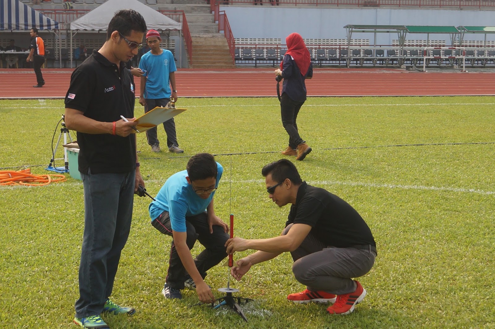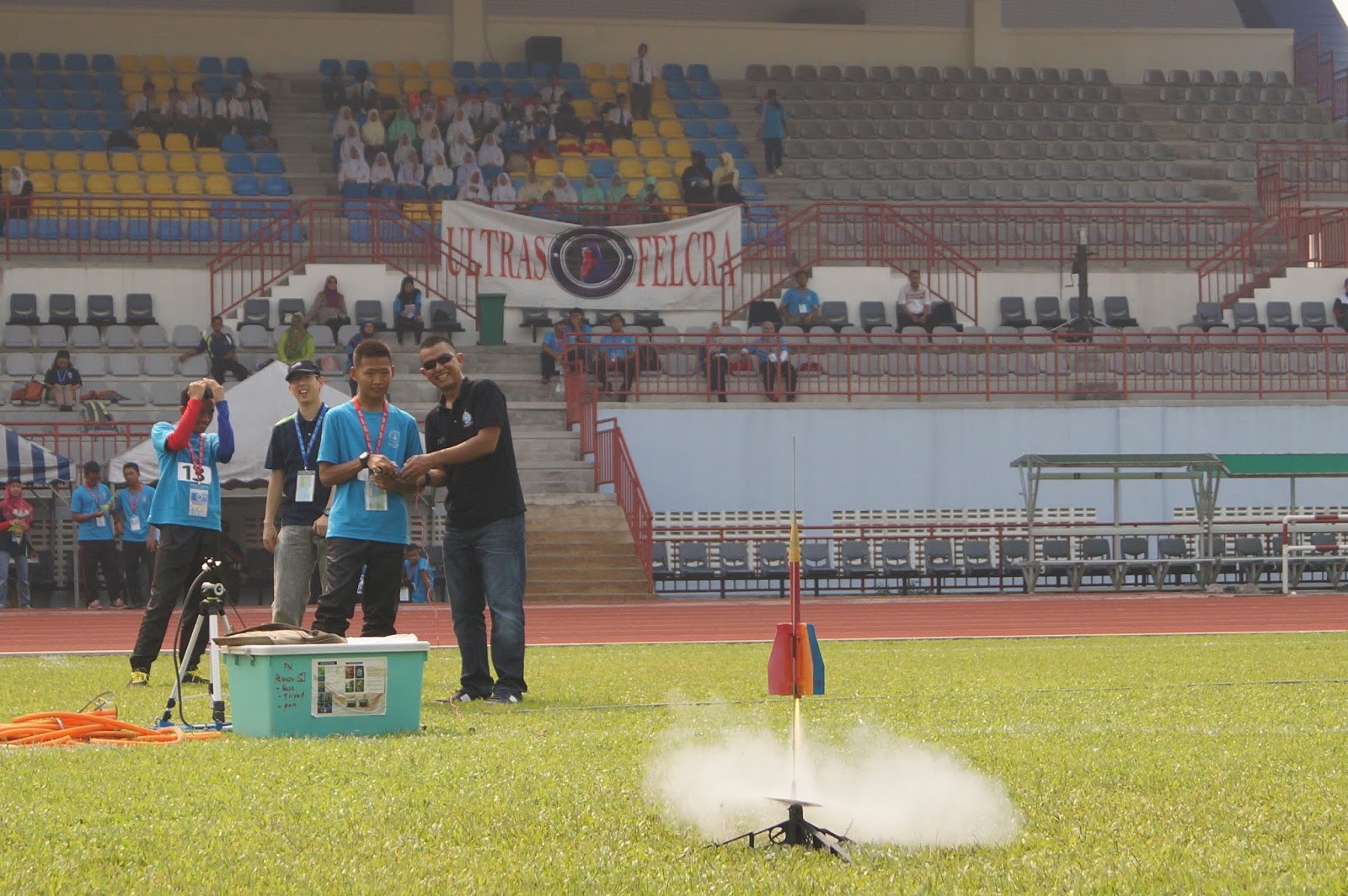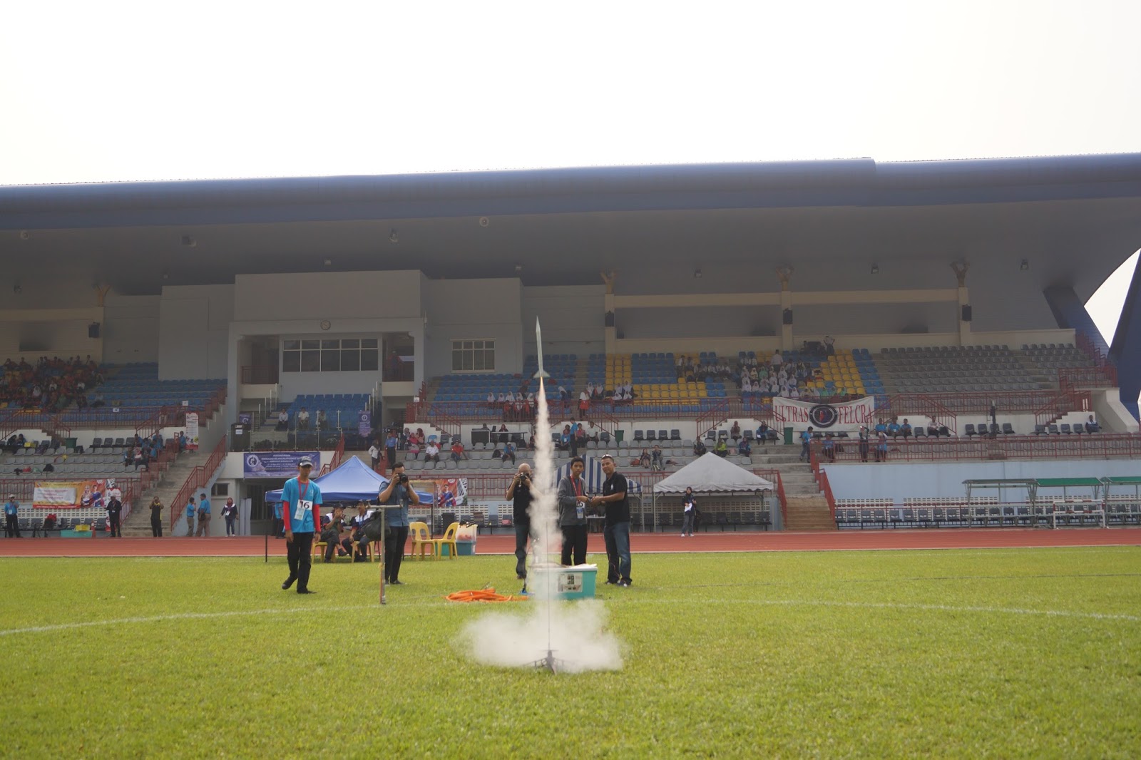 24th and 25th August 2015: We introduced the solid fuel category during the recent National Rocketry Challenge to bring excitement after 13 years of competition using water rockets. During the first day, the top 19 schools in Malaysia went through our Advanced Rocketry Workshop and designed and built their rockets. They were judged for rocket design and teamwork. The folowing day, the teams were impressive with their launches and were judged for apogee and parachute deployment. In the end, MRSM Pasir Salak, Perak emerged as the winner narrowly beating SMK Khir Johari also from Perak and the rest of he field. We had fun and hope that the students did too. We would like to thank Planetarium Negara and MOSTI for having us and we look forward to the solid fuel category being a permanent part of the national competiton. We would also like to thank our new volunteers and mentors (Uncle Zul, Jenal, Subly and Nazmi) for contributing towards the success of the programme. Thank you guys!!! We’re wishing everyone a great “Merdeka Day” ahead. Do enjoy the pictures…